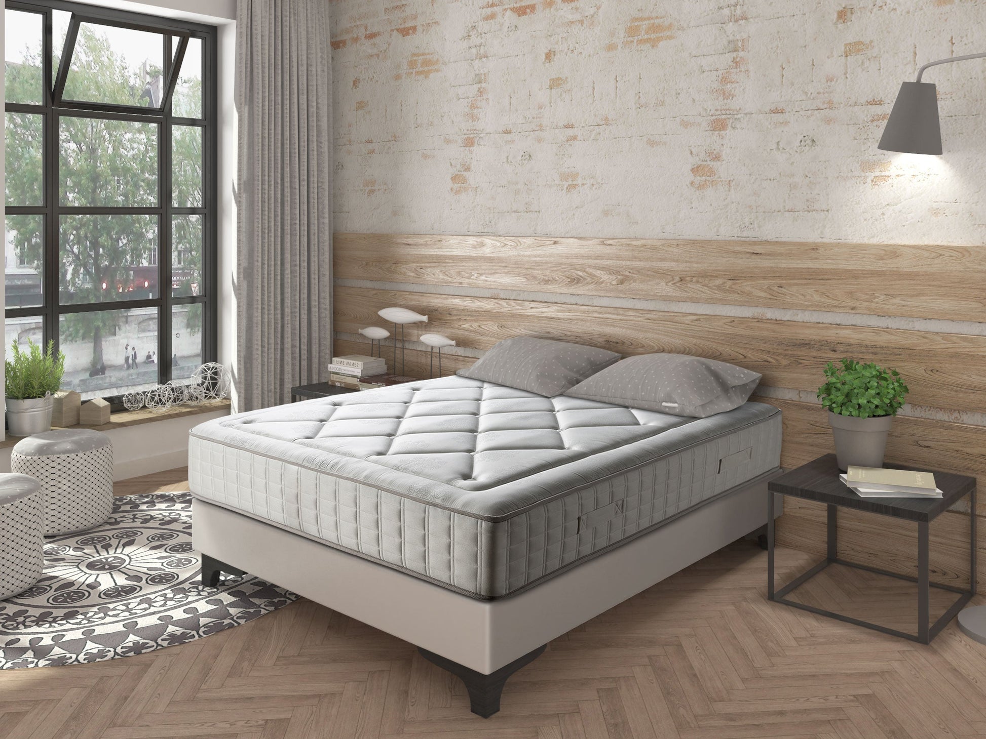 Don't wait any longer to enjoy the SUPER comfort offered by its eco-friendly materials: padding composed of 100% natural Merino Wool fiber, Viscose + Cotton fabric, and its pocket spring core made from recycled tempered steel.