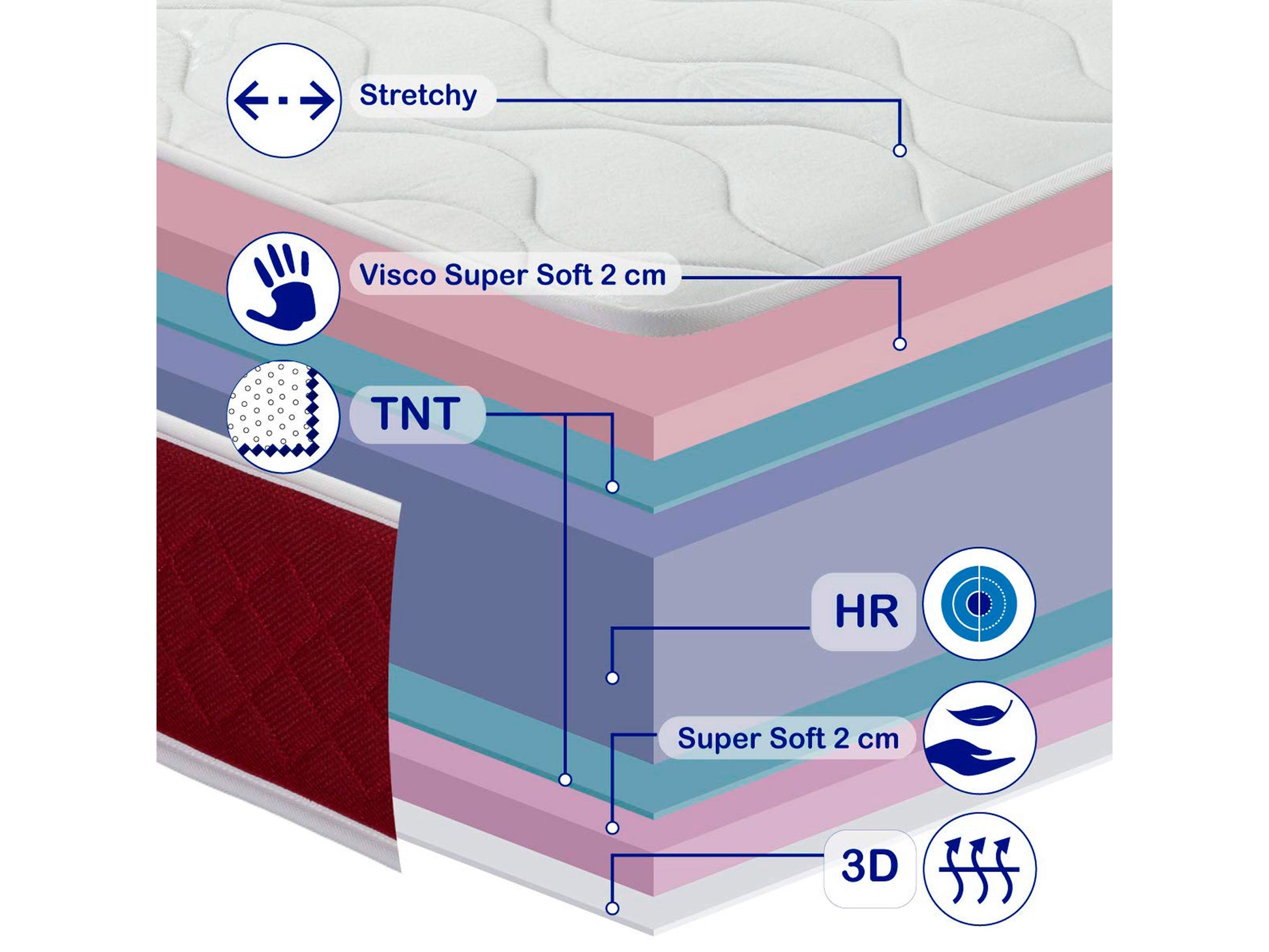 - Núcleo HR (Alta Recuperación) 25 kg/m3 de densidad que proporciona la adaptabilidad y la firmeza adecuada.